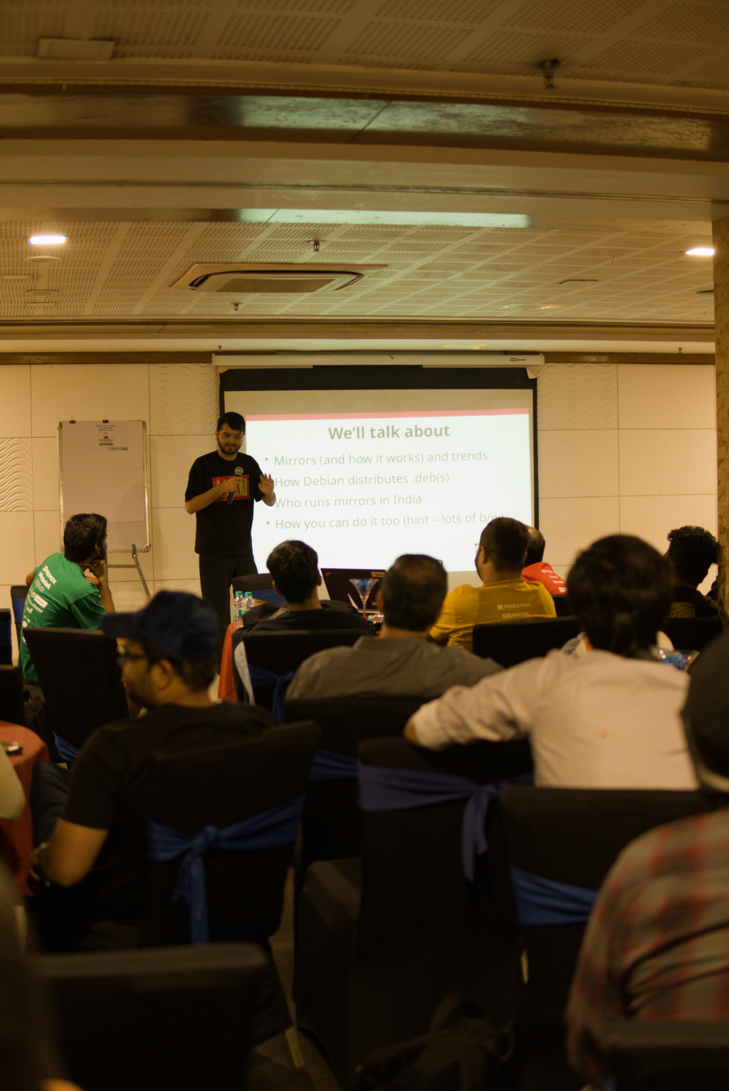 This time, I gave a talk on Basics of a Free Software Mirror (and how Debian does it) (Presentation URL). I had the idea for this talk for a while and gave a KDE version of it during KDE India Conf 2025. The gist was to explain how Free Software is delivered to users and how one can help. For MDC, I focused a bit on Debian mirror network(s) and who else host mirrors in India and trends.